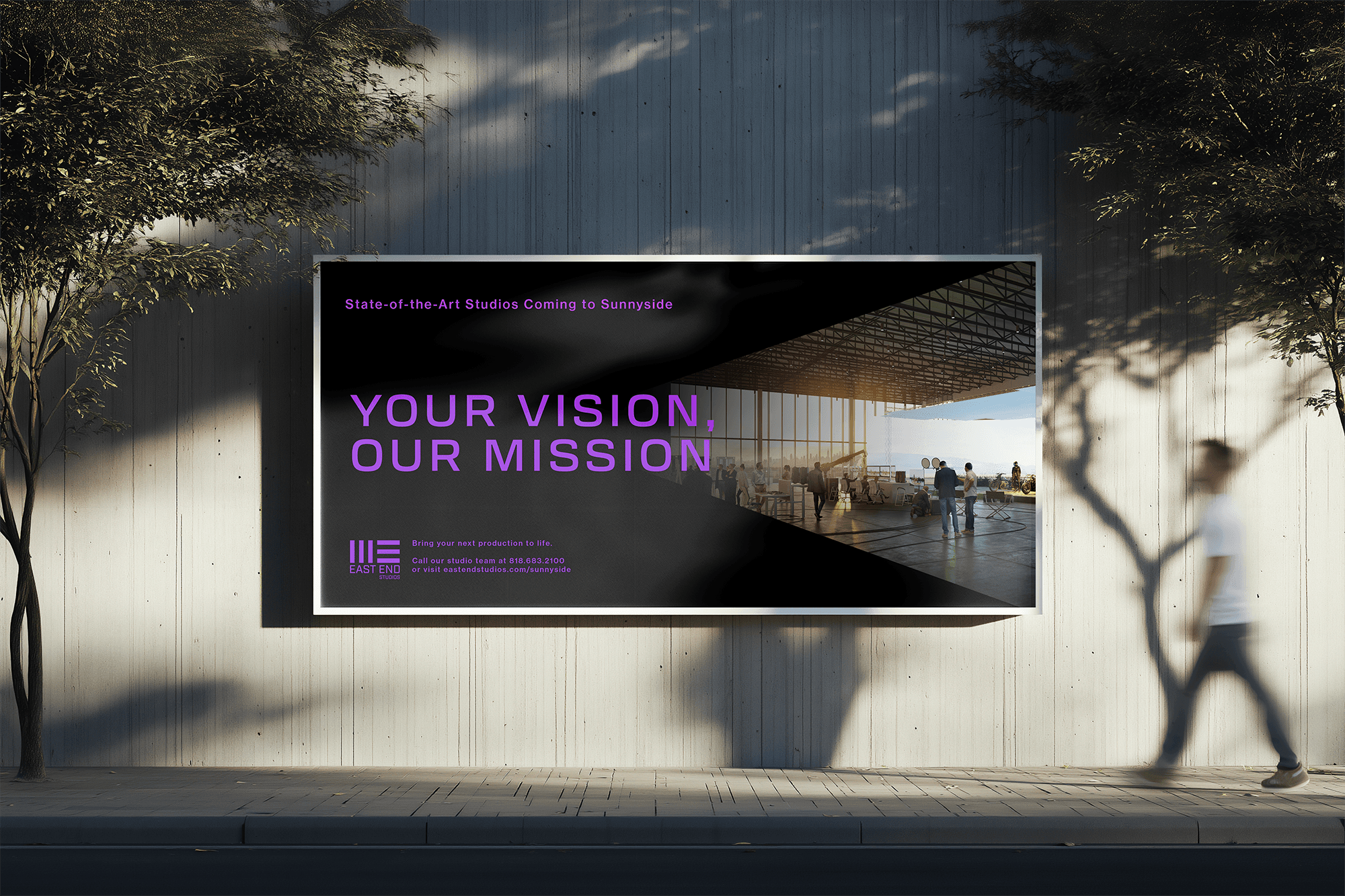 East End Studios is redefining the infrastructure behind modern storytelling—an expansive network of next-generation production campuses across Los Angeles and New York. Guided by the ethos Your vision, our mission, we evolved the existing identity into a living, scalable brand—one capable of reflecting both the ambition of the platform and the precision required by today’s film, television, and streaming industries.